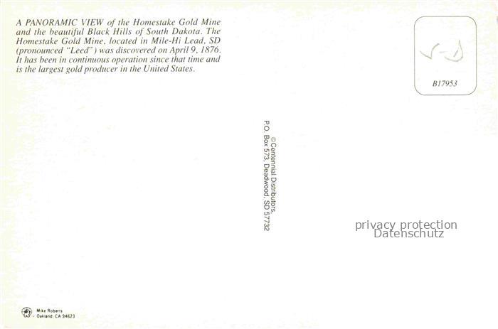 74091408 South Dakota US-State Homestake Gold Mine Fliegeraufnahme postalisch nicht gelaufen Erhaltung siehe scans [WerneD78] KatCode: 14140440000000