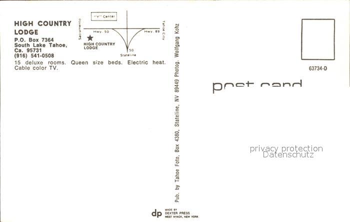71969267 South Lake Tahoe High Country Lodge postalisch nicht gelaufen Erhaltung siehe scans KatCode: 14140050000000