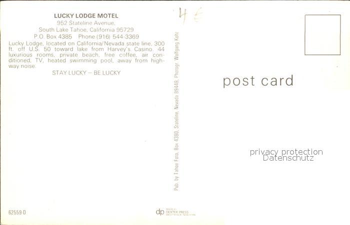 72314039 South Lake Tahoe Lucky Lodge Motel postalisch nicht gelaufen Erhaltung siehe scans KatCode: 14140050000000
