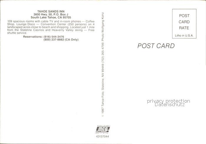 72131287 South Lake Tahoe Tahoe Sands Inn postalisch nicht gelaufen Erhaltung siehe scans KatCode: 14140050000000