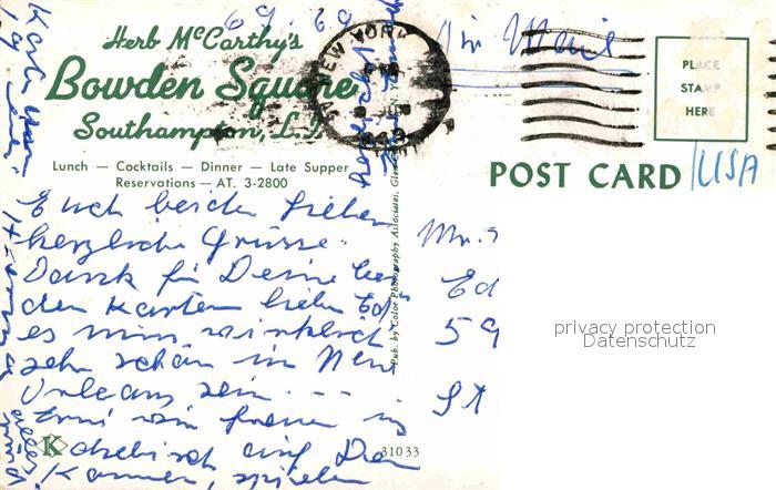 72905590 old postcard Southampton New York Herb McCarthys Restaurant Bowden Square postalisch gelaufen Erhaltung siehe scans [FriedD77] KatCode: 14140340000000