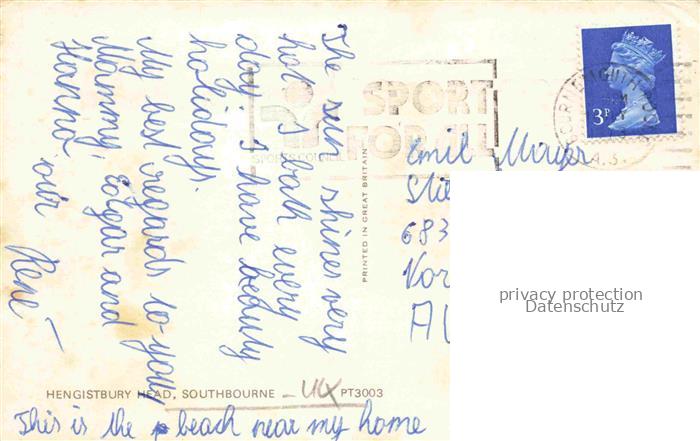 74096122 old postcard Southbourne Bournemouth UK Hengistbury Head postalisch gelaufen Erhaltung siehe scans [IrynaD87] KatCode: 11570UKK2K21HN
