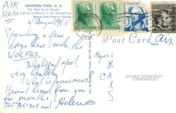73130344 old postcard Southern Pines Mid South Resort postalisch gelaufen Erhaltung siehe scans [NatalD47] KatCode: 14140350000000