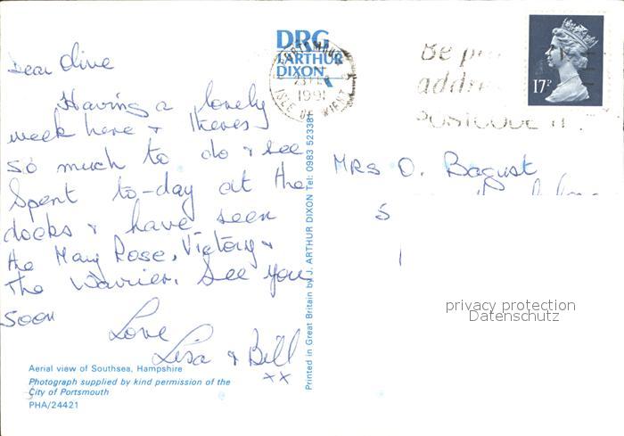 old postcard Southsea Aerial view of Southsee Hampshire postalisch gelaufen Erhaltung siehe scans
