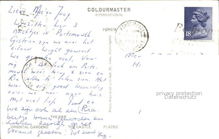 old postcard Southsea Pier Castle Oriental Gardens postalisch gelaufen Erhaltung siehe scans