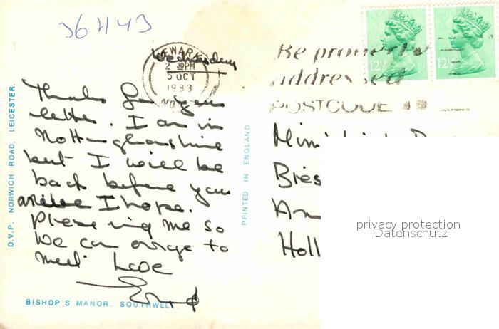 old postcard Southwell Newark and Sherwood Bishop’s Manor postalisch gelaufen Erhaltung siehe scans [AndreD76]