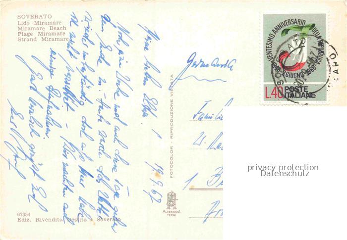 34145655 old postcard Soverato Catanzaro Calabria IT Lido Miramare postalisch gelaufen Erhaltung siehe scans [WerneD78] KatCode: 11240