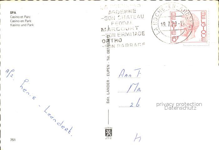 72428832 carte postale Spa Liege Casino et Parc postalisch gelaufen Erhaltung siehe scans KatCode: 11070063000591