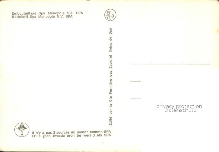 72283402 Spa Liege Embouteilage Spa Monopole postalisch nicht gelaufen Erhaltung siehe scans KatCode: 11070063000591