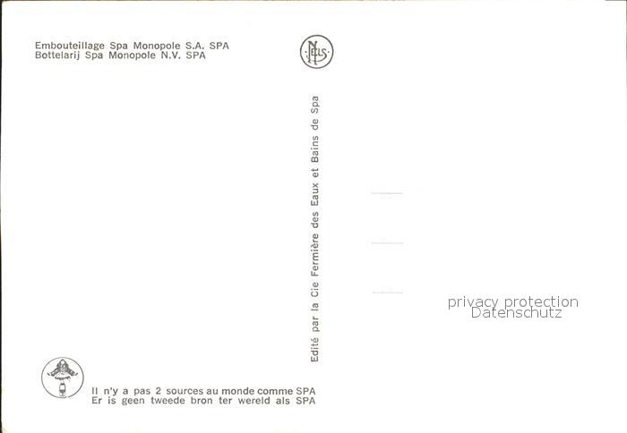 72286427 Spa Liege Embouteillage Spa Monopole S.A. postalisch nicht gelaufen Erhaltung siehe scans KatCode: 11070063000591