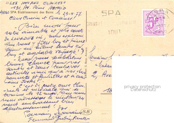 73575790 carte postale Spa Liege Etablissement des Bains postalisch gelaufen Erhaltung siehe scans [LiesaD40] KatCode: 11070063000591