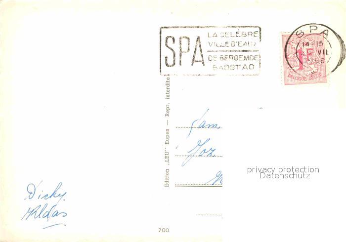 72890469 carte postale Spa Liege Kirche Fontaene Park Muehle Fliegeraufnahme postalisch gelaufen Erhaltung siehe scans [WerneD78] KatCode: 11070063000591