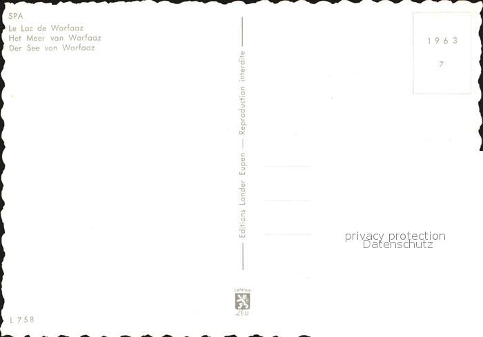 72450330 Spa Liege Lac de Warfaaz postalisch nicht gelaufen Erhaltung siehe scans KatCode: 11070063000591