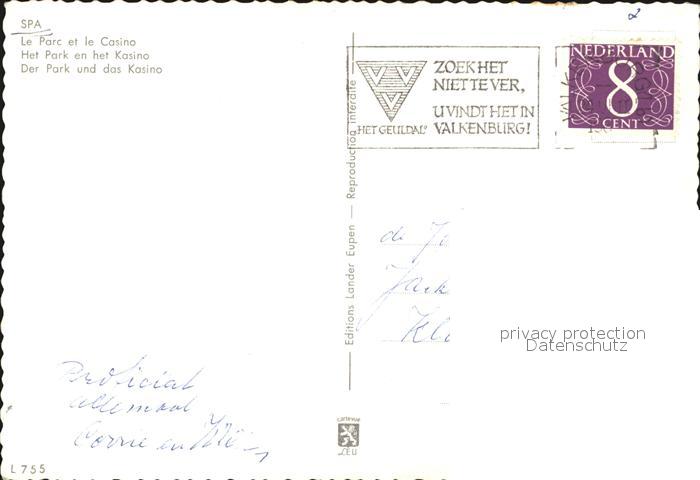 72467252 carte postale Spa Liege Parc et Casion postalisch gelaufen Erhaltung siehe scans KatCode: 11070063000591