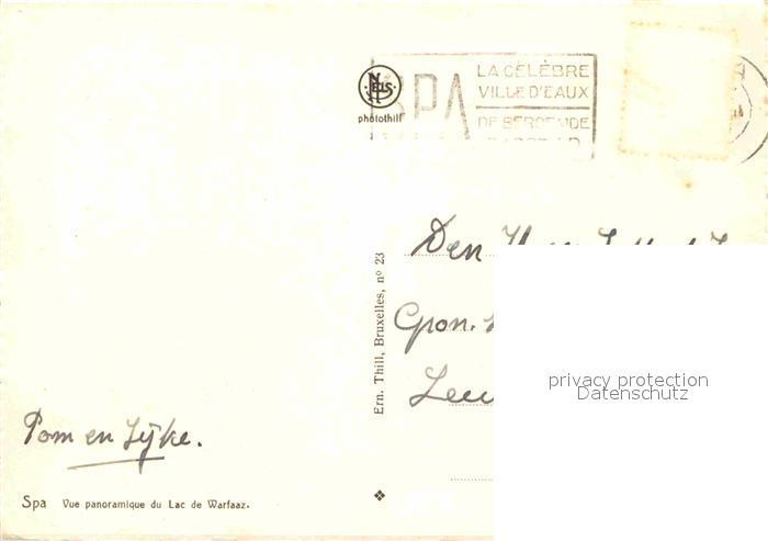 72890484 carte postale Spa Liege Vue panoramique du Lac de Warfaaz postalisch gelaufen Erhaltung siehe scans [WerneD78] KatCode: 11070063000591