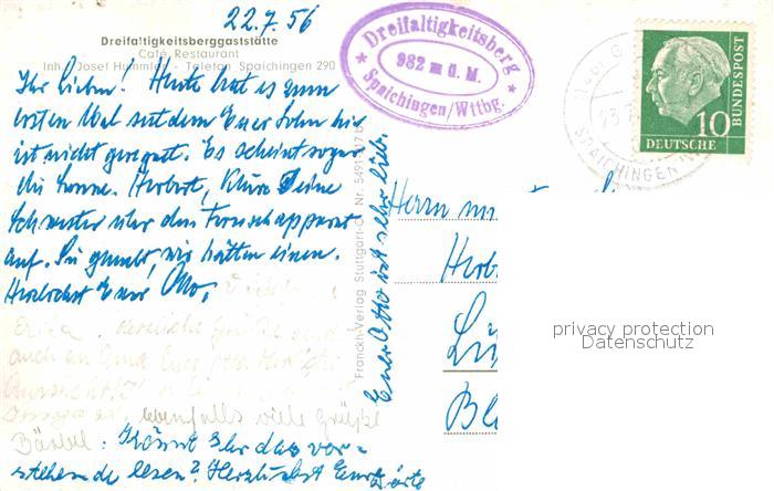 72791559 alte Postkarte Spaichingen Dreifaltigkeitsberg postalisch gelaufen Erhaltung siehe scans [AndreD76] KatCode: 11110008327046