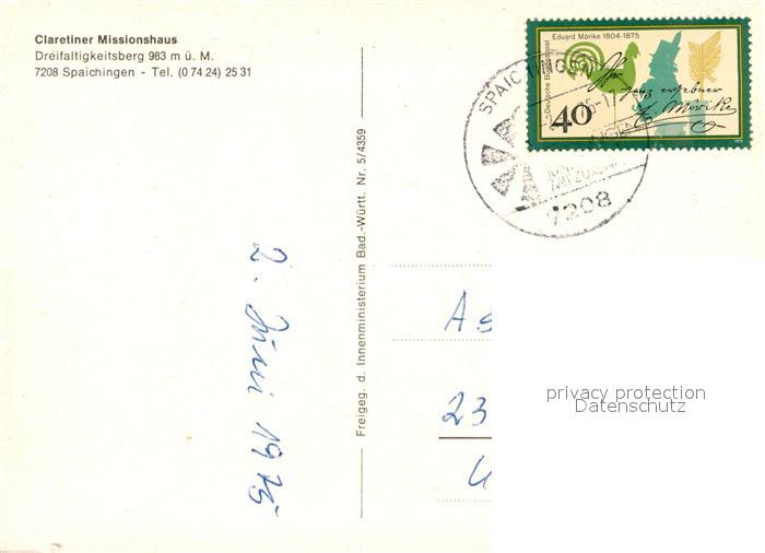 73239863 alte Postkarte Spaichingen Fliegeraufnahme Claretiner Missionshaus Dreifaltigkeitsberg postalisch gelaufen Erhaltung siehe scans [KathaD81] KatCode: 11110008327046