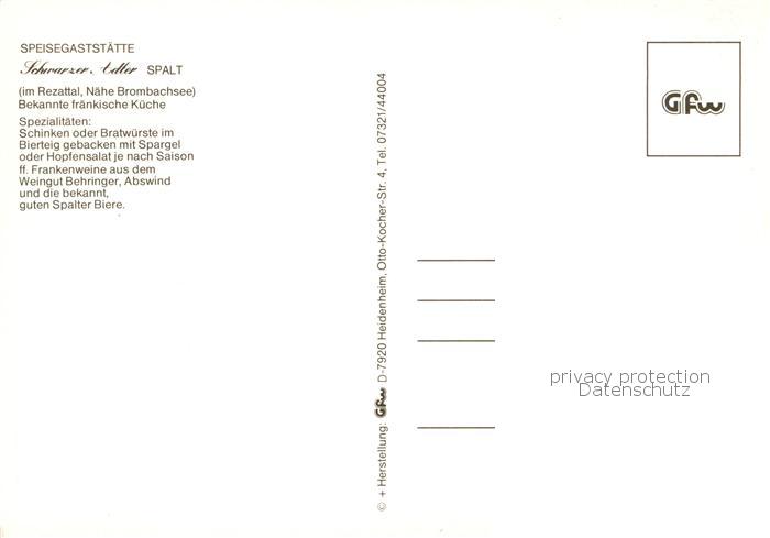 73863032 Spalt Gaststaette Schwarzer Adler restaurant Tuerschild postalisch nicht gelaufen Erhaltung siehe scans [FriedD77] KatCode: 11110009576147