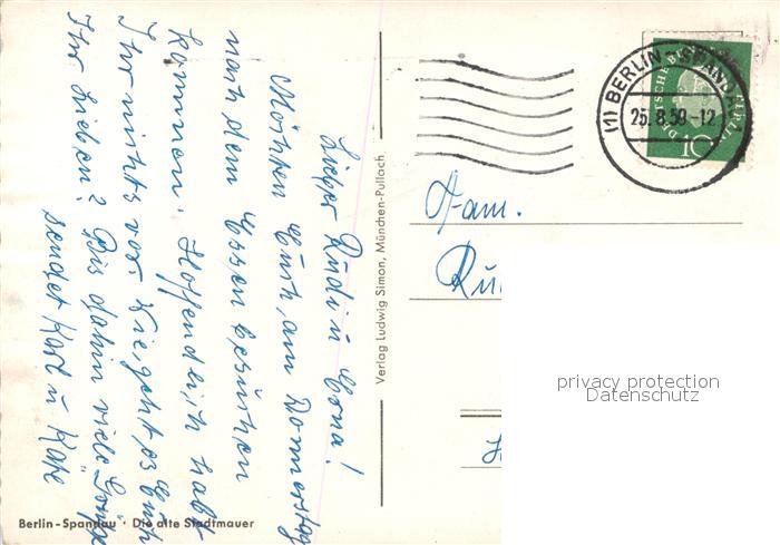 43369245 alte Postkarte Spandau Alte Stadtmauer postalisch gelaufen Erhaltung siehe scans [FriedD77] KatCode: 11110011000000