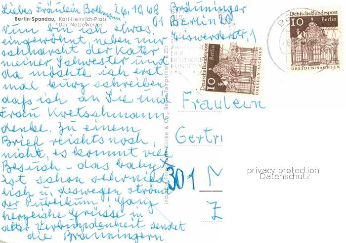 72709304 alte Postkarte Spandau Karl-Heinrich-Platz Der Netzewerfer postalisch gelaufen Erhaltung siehe scans [LiesaD40] KatCode: 11110011000000