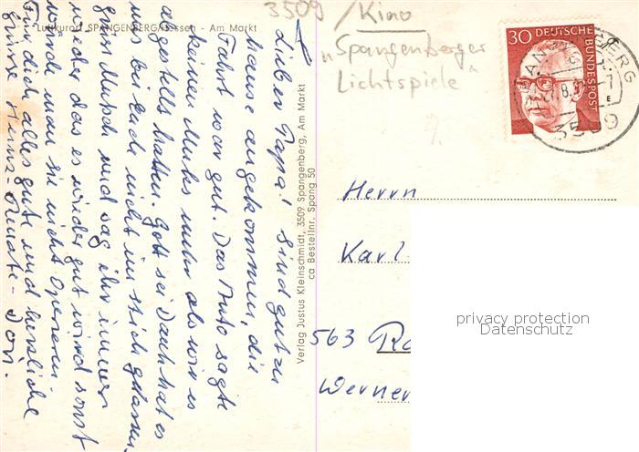 73853814 alte Postkarte Spangenberg Hessen Am Markt postalisch gelaufen Erhaltung siehe scans [WerneD78] KatCode: 11110006634024