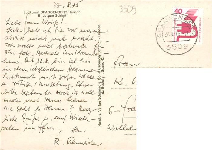 73936700 alte Postkarte Spangenberg Hessen Panorama mit Schloss postalisch gelaufen Erhaltung siehe scans [WerneD78] KatCode: 11110006634024