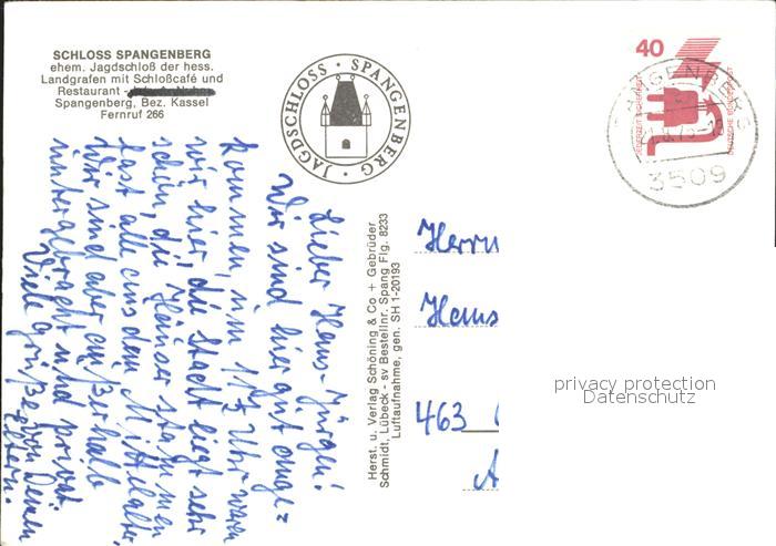 72213926 alte Postkarte Spangenberg Hessen Schloss Spangenberg Fliegeraufnahme postalisch gelaufen Erhaltung siehe scans KatCode: 11110006634024