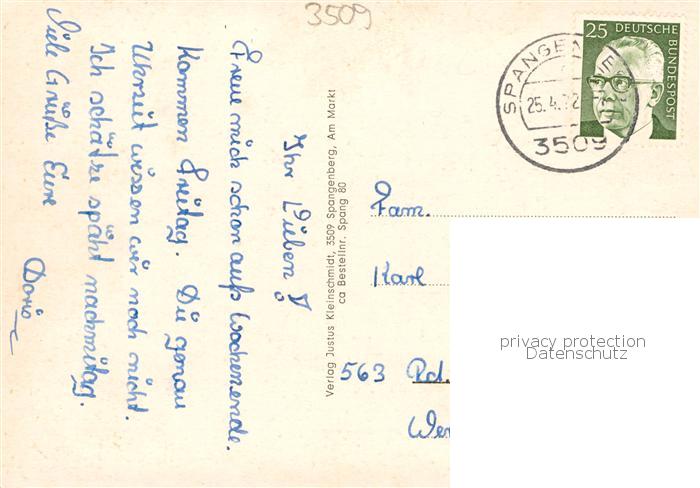 73865496 alte Postkarte Spangenberg Hessen Teilansichten Luftkurort Brunnen Fachwerkhaeuser Brunnen postalisch gelaufen Erhaltung siehe scans [FriedD77] KatCode: 11110006634024