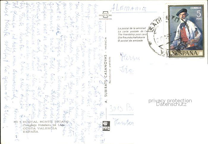 old postcard Spanien Costa Valencia Hostal Monte Picayo postalisch gelaufen Erhaltung siehe scans