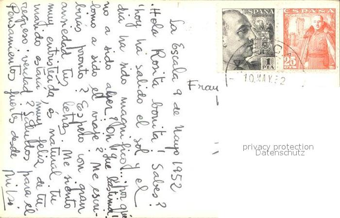 alte Postkarte Spanien La Escala la Playa postalisch gelaufen Erhaltung siehe scans