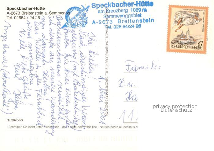 73231331 alte Postkarte Speckbacherhuette Kreuzberg Kreuzberg Breitenstein am Semmering postalisch gelaufen Erhaltung siehe scans [LiesaD40] KatCode: 11390223061304