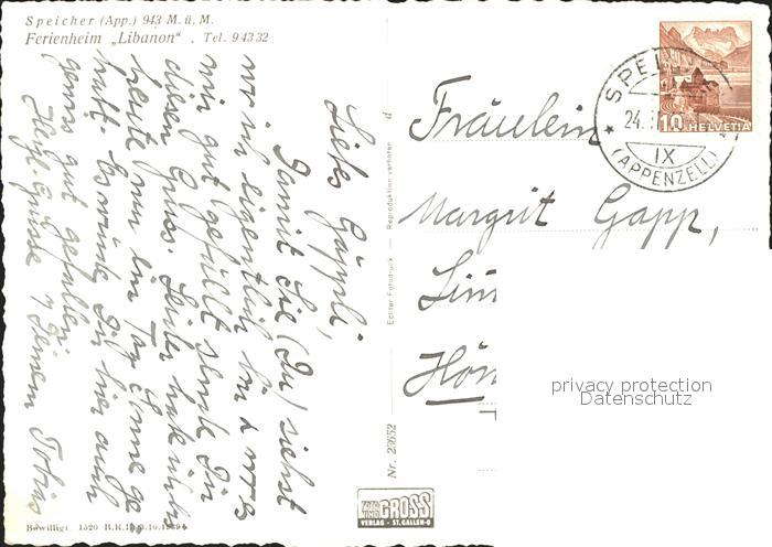 11622333 alte Postkarte Speicher AR Ferienheim Libanon postalisch gelaufen Erhaltung siehe scans KatCode: 11470020065552