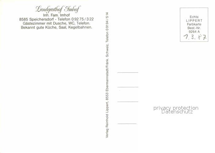 72641478 Speichersdorf Landgasthof Imhof Restaurant Aussichtsturm postalisch nicht gelaufen Erhaltung siehe scans [FriedD77] KatCode: 11110009472190