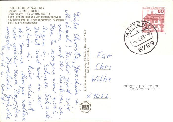 72026746 alte Postkarte Speicherz Gasthof Zum Biber postalisch gelaufen Erhaltung siehe scans KatCode: 11110009672134