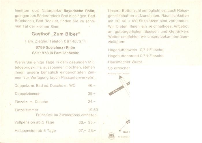 73915067 Speicherz Rhoen Motten Bayern Gasthof Zum Biber Gastraum Weinkeller Autobahnbruecke postalisch nicht gelaufen Werbekarte (keine Postkarte) Erhaltung siehe scans [FriedD77] KatCode: 11110009672134