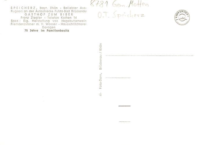 73878703 Speicherz Rhoen Motten Bayern Panorama Gasthof zum Biber postalisch nicht gelaufen Erhaltung siehe scans [FriedD77] KatCode: 11110009672134