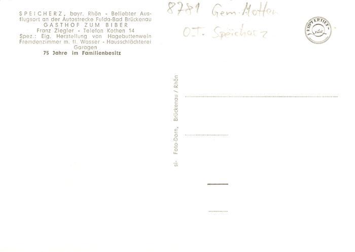 73869725 Speicherz Rhoen Motten Bayern Panorama Gasthof zum Biber postalisch nicht gelaufen Erhaltung siehe scans [FriedD77] KatCode: 11110009672134