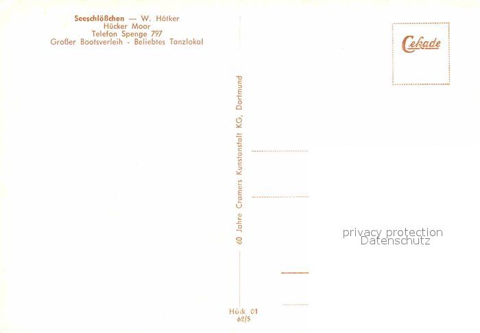 72744034 Spenge Seeschloesschen Huecker Moor Gaststaette Tanzlokal postalisch nicht gelaufen Erhaltung siehe scans [FriedD77] KatCode: 11110005758032