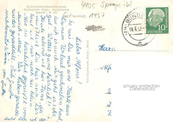 33700729 alte Postkarte Spenge Seeschloesschen Restaurant Bar Gastraeume postalisch gelaufen Erhaltung siehe scans [WerneD78] KatCode: 11110005758032
