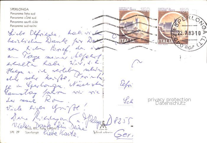 old postcard Sperlonga Latina Panorama Suedseite postalisch gelaufen Erhaltung siehe scans