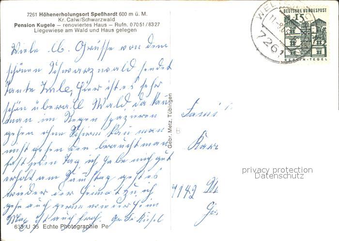 72088367 alte Postkarte Spesshardt Pension Kugele postalisch gelaufen Erhaltung siehe scans KatCode: 11110008235085
