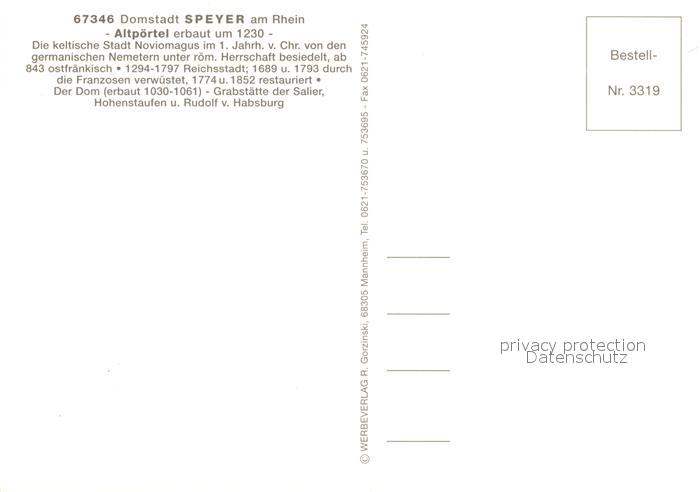 73255168 Speyer Rhein Altpoertel Stadttor postalisch nicht gelaufen Erhaltung siehe scans [WerneD78] KatCode: 11110007318000