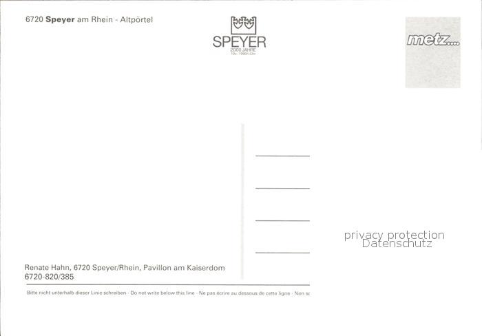 72439357 Speyer Rhein Altpoertel Stadttor postalisch nicht gelaufen Erhaltung siehe scans KatCode: 11110007318000
