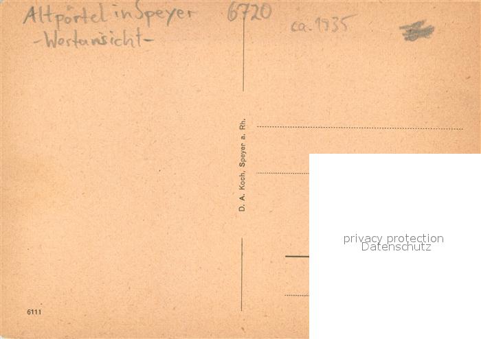 73695448 Speyer Rhein Altpoertel Westansicht postalisch nicht gelaufen Erhaltung siehe scans [FriedD77] KatCode: 11110007318000