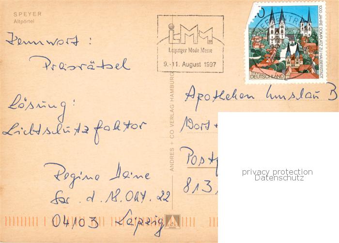 73863192 alte Postkarte Speyer Rhein Altpoertel postalisch gelaufen Erhaltung siehe scans [WerneD78] KatCode: 11110007318000