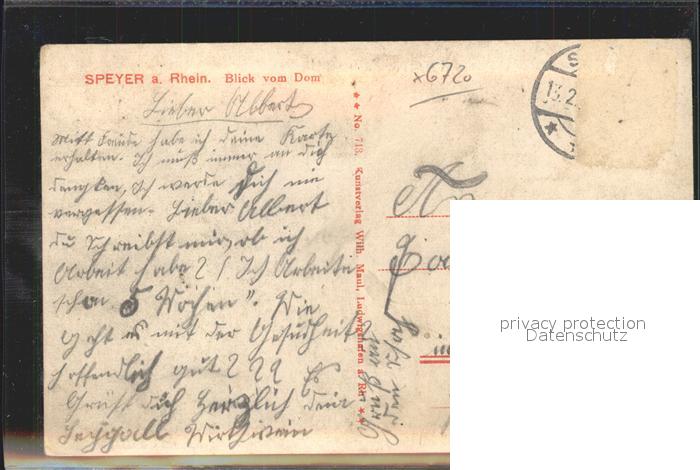 41753845 alte Postkarte Speyer Rhein Blick vom Dom postalisch gelaufen Erhaltung siehe scans KatCode: 11110007318000