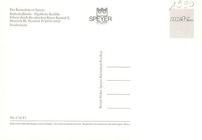 73941575 alte Postkarte Speyer Rhein Der Kaiserdom Kathedralkirche Paepstliche Basilika postalisch gelaufen Fliegeraufnahme Erhaltung siehe scans [WerneD78] KatCode: 11110007318000
