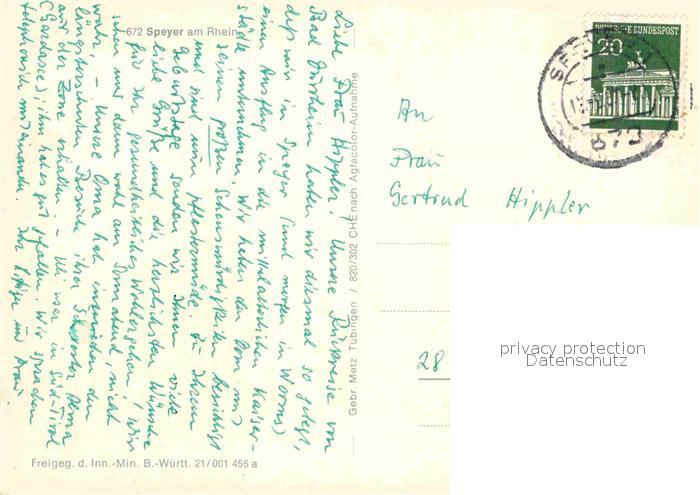 72781069 alte Postkarte Speyer Rhein Dom Fliegeraufnahme postalisch gelaufen Erhaltung siehe scans [FriedD77] KatCode: 11110007318000