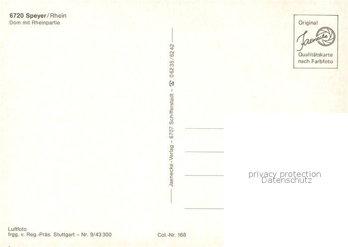 73540118 Speyer Rhein Dom mit Rheinpartie Fliegeraufnahme postalisch nicht gelaufen Erhaltung siehe scans [WerneD78] KatCode: 11110007318000
