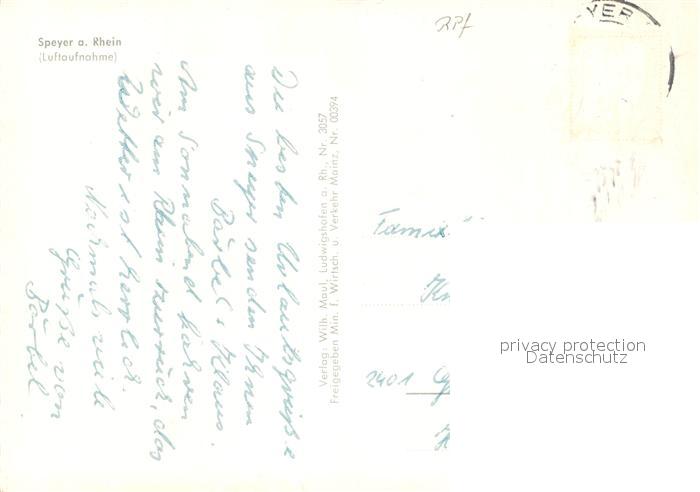 73123468 alte Postkarte Speyer Rhein Fliegeraufnahme postalisch gelaufen Erhaltung siehe scans [PaolaD17] KatCode: 11110007318000